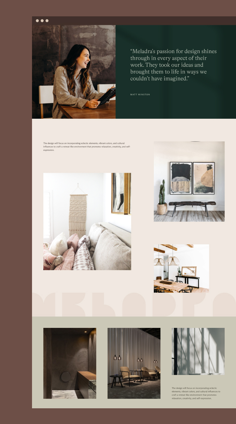 Meladra sought to launch their new brand and establish themselves as a high-end provider of interior design services in the Pacific Northwest and beyond. They needed a website that reflected their elevated brand and resonated with individuals looking for a premier design partner—particularly those building new homes and requiring a trusted advocate throughout the design process.